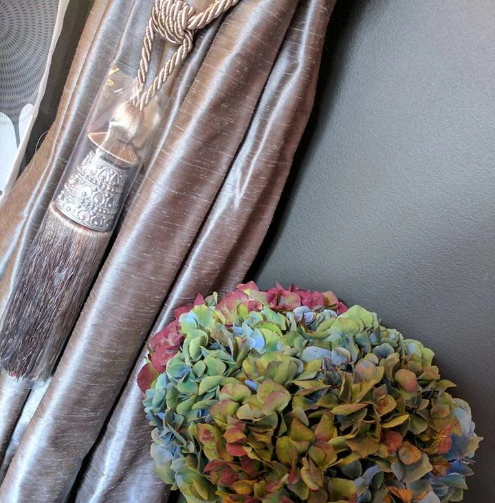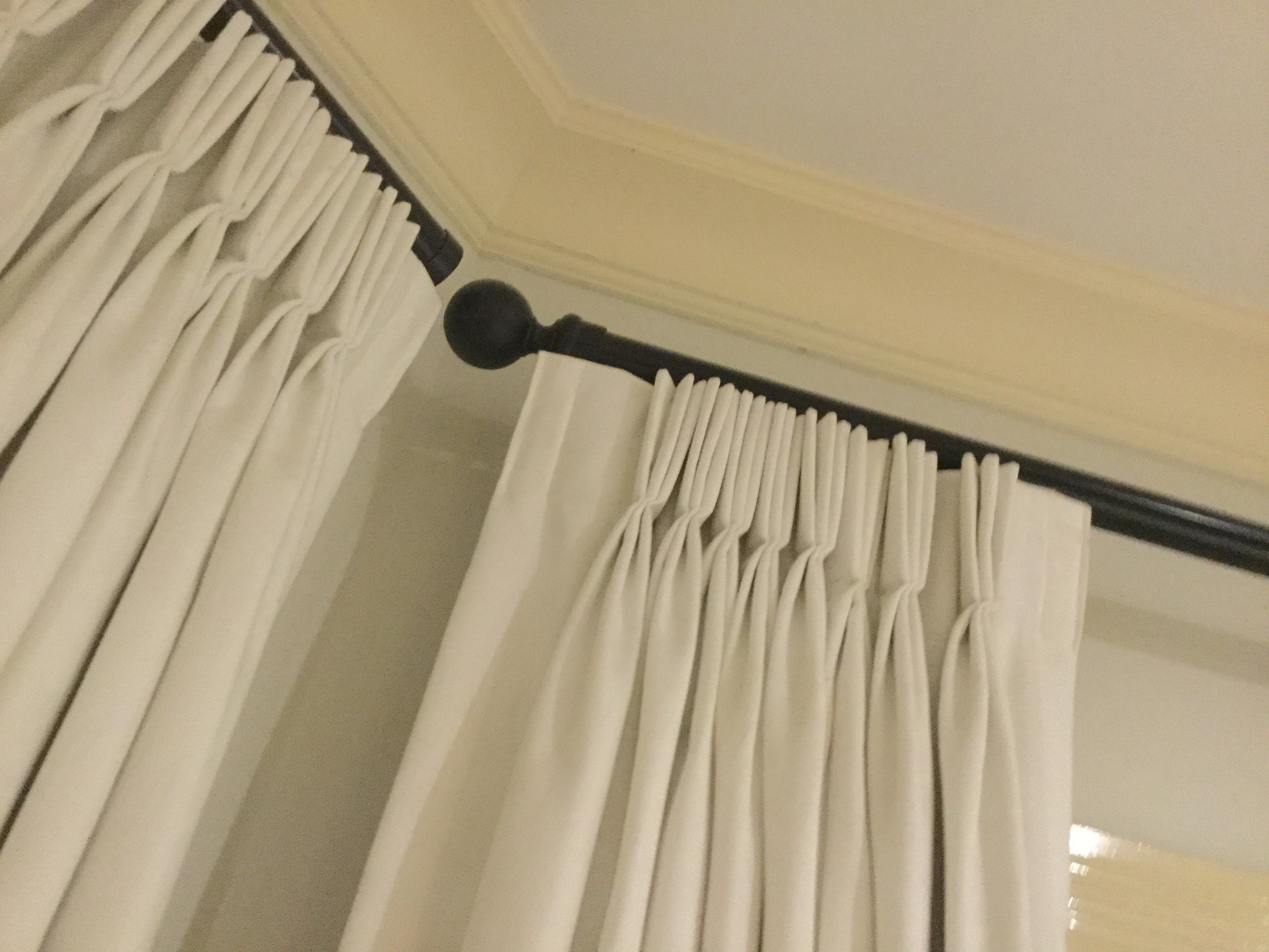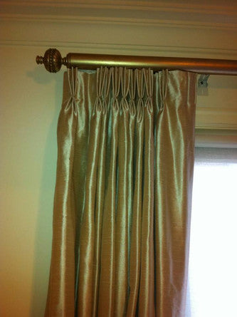 Triple Pinch Pleated drapesin Zepel Silky II on a Elegant Ends decorative rod.