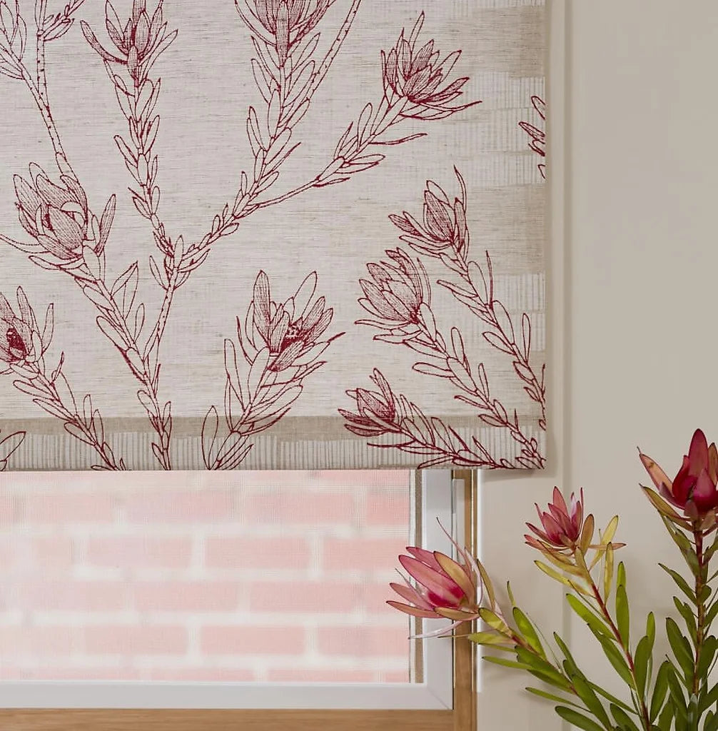 Translucent stiffend Roller Blindin Ink and Spindle screen printed fabric