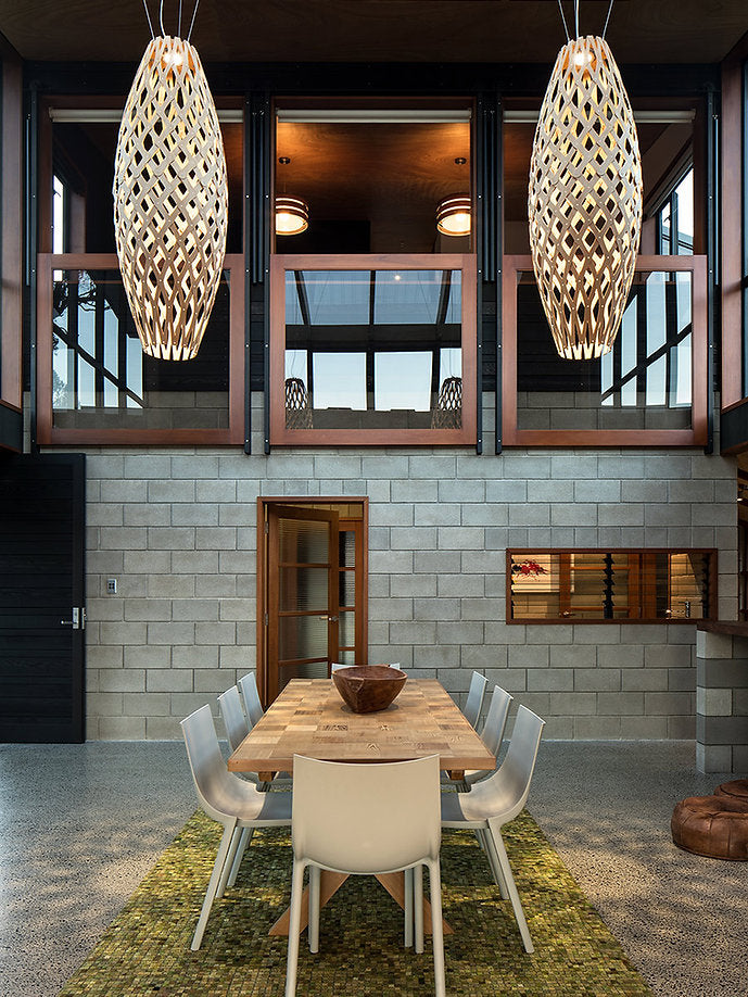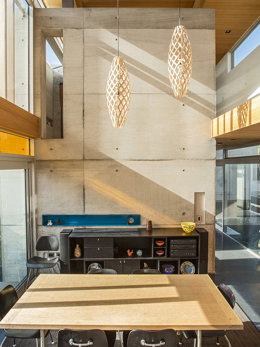Hīnaki was David’s first exploration into lighting in 1995 when he made a prototype based on fish traps which are called hīnaki by Maori. Hīnaki traps were made from woven vines, some in amazingly beautiful forms.