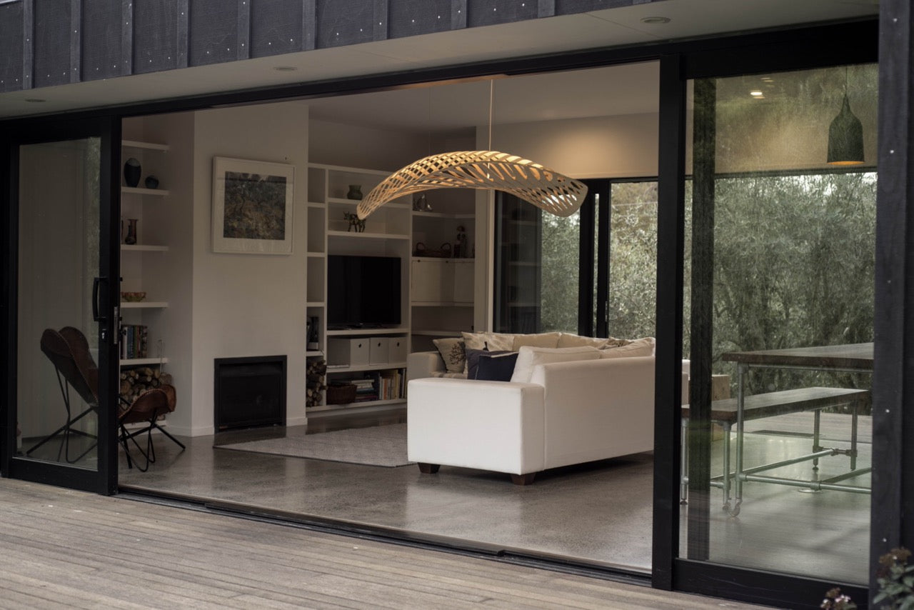Navicula is inspired by microscopic diatoms which live in water and produce 50% of the air we breathe. The light is crafted from strong, multi-layered bamboo plywood creating a natural skeletal skin. The tensile form is lit internally by an LED strip which emits a soft upwards glow of light. Navicula is ideal for a dining table, lounge, foyer, reception or as a sculptural lighting feature. In 2016 Navicula won a Gold Best award and in 2017 a Good Design award. Navicula featured in the Grand Designs New Zealand 'Floating Beach Bach' in 2020.